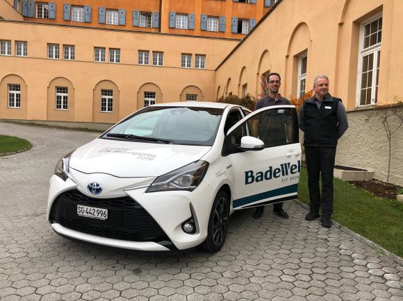 Flavio Barreto gewinnt den Badewelten Bildungspreis 2019. Er darf während eines Jahres den Toyota Yaris Hybrid kostenlos nutzen.